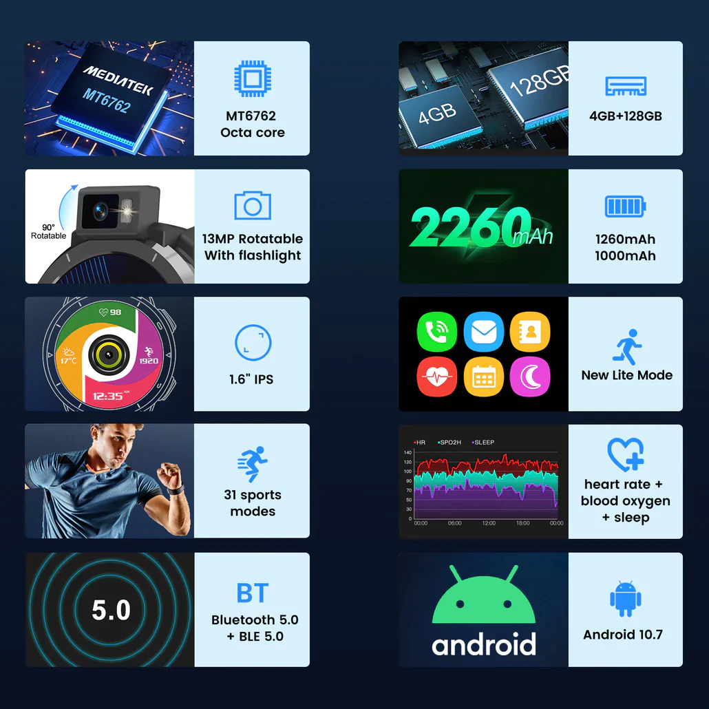 Introducing the first-ever smartwatch with a 13MP rotatable flashlight camera.